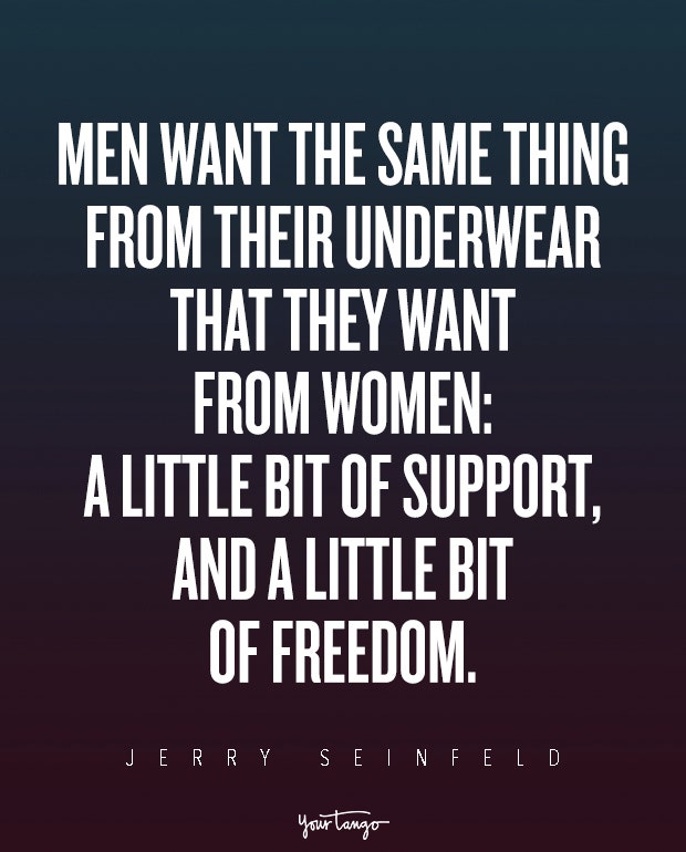 "Men want the same thing from their underwear that they want from women: a little bit of support, and a little bit of freedom." — Jerry Seinfeld