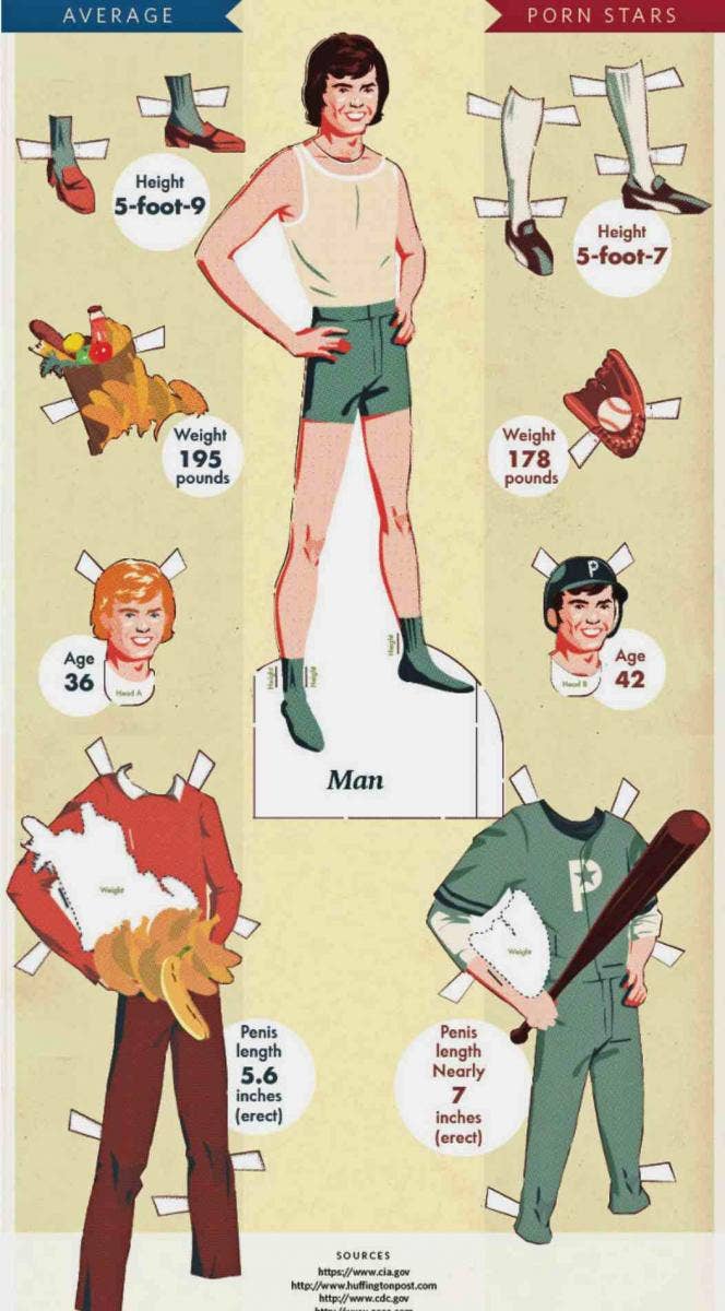 The dudes are viewed as being of average or ripped build, but in possession of some serious length and girth below the belt. That's the typical and pervasive perception of the porn star "look," both male and female. But it's not as accurate as you may think.