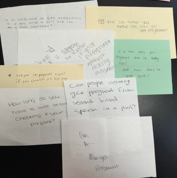 It looks like one teacher decided to find out by letting students anonymously turn in their biggest questions about sex. That person then posted pictures of the questions on Reddit.