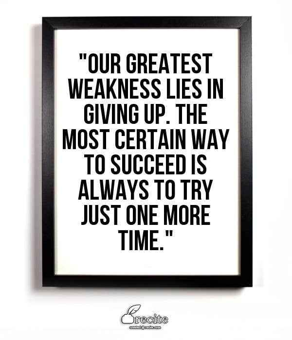 "Our greatest weakness lies in giving up. The most certain way to succeed is always to try just one more time."