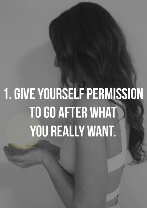 1. Give yourself permission to go after what you really want. Your permission is the only one that matters.