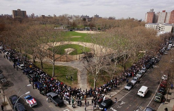 The NYPD set up barriers to shuffle in those waiting on the street, but soon after, the line grew exponentially. It was again wrapped around the corner, and running even further down the street. There were easily a few thousand of us waiting.