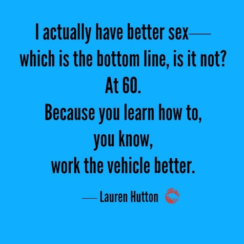 3. "I actually have better sex — which is the bottom line, is it not? At 60. Because you learn how to, you know, work the vehicle better." —Lauren Hutton