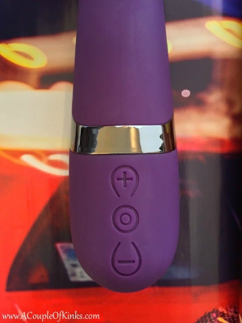 There are three buttons: higher, lower and change of pattern. It contains a dual motor, which makes unique patterns. There are 12 different intensities with 8 vibration patterns possible on each level. The buttons light up when you press them for easy navigation. It requires 120 minutes to charge and can provide up to 60 minutes of battery life.