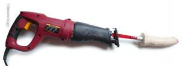 In the version you can purchase at a variety of stores online, the saw attachment has been removed, and the Saw Vac-U-Lock Adapter and dildo affixed to it is not sharp in any way, shape or form. Personally, I recommend buying the entire unit and using it only for the bedroom. No one wants a sawdust and dirt covered sawsall near their delicate lady parts.