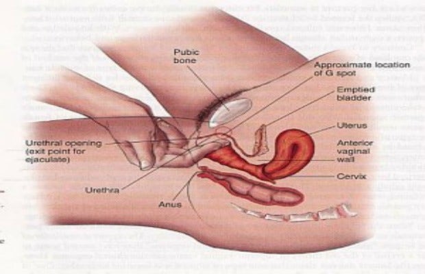 It feels different on different women but most consistently I describe it as a knot or mass of dense tissue. It’s a hard lump that is more ridged and rigid on some women than others. If manually stimulating a woman who is lying on her back in front of you, you would enter your first and middle fingers into the vagina and firmly press up and down on that spot with a quick, rhythmic motion.