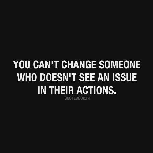 "You can't change someone who doesn't see an issue in their actions."