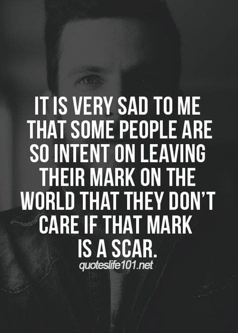 "It is very sad to me that some people are so intent on leaving a mark on the world that they don't care if that mark is a scar."