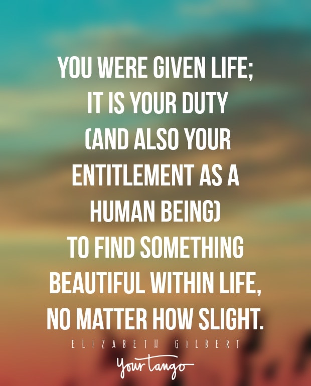 "You were given life; it is your duty (and also your entitlement as a human being) to find something beautiful within life, no matter how slight."— Elizabeth Gilbert