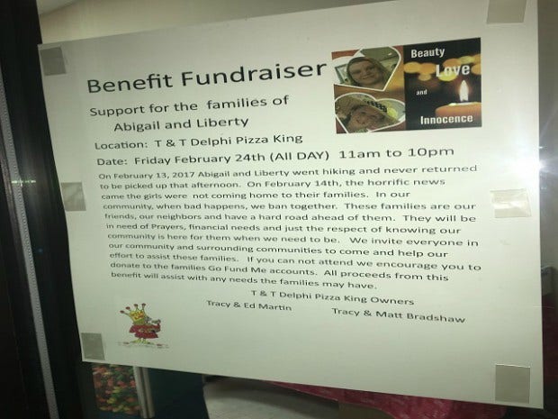 On Saturday, local pizzaria The Pizza King held a fundraiser to help the families of Liberty German and Abigail Williams.