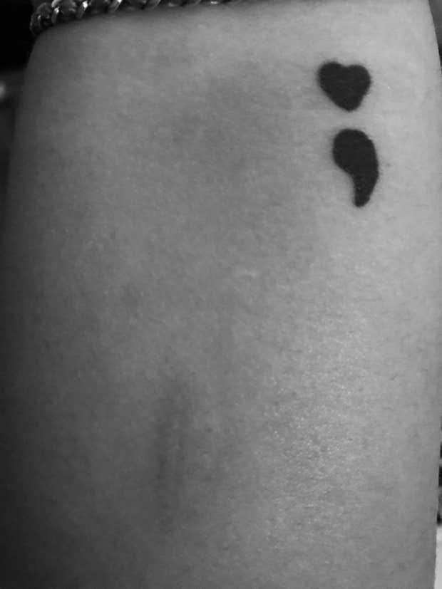 "Through the semicolon symbol many related to the struggle of depression, addiction, self-injury and suicide and their will to continue on. The title, 'Project Semicolon,' also represented a goal — to believe that this is not the end but a new beginning.