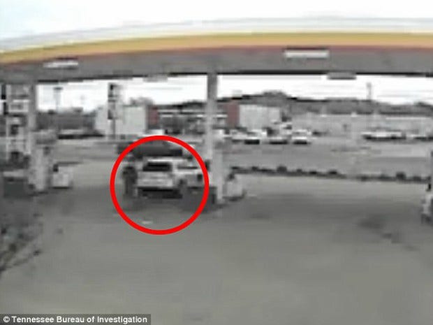 Cummins was seen on surveillance footage putting gas into the vehicle and driving toward Elizabeth Thomas' place of work, Shoney's Restaurant.