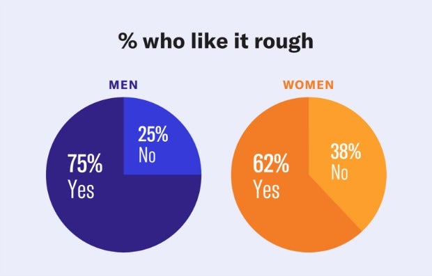 According to an article in MensHealth, it turns out that, "After polling more than 400,000 OkCupid members, the dating website found that 62 percent of women enjoy rough sex ... Of members we asked the question 'Do you prefer sex rough or gentle,' 75% of men and 62% of women replied either 'rough' or 'I enjoy both equally.' The rest said they preferred gentle or skipped the question."