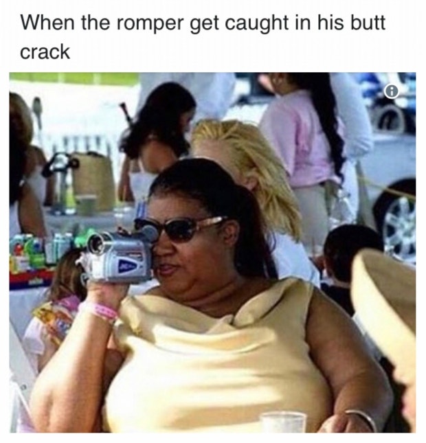 "When you in the mall and ya homie suggests matching rompers for the kickback later."