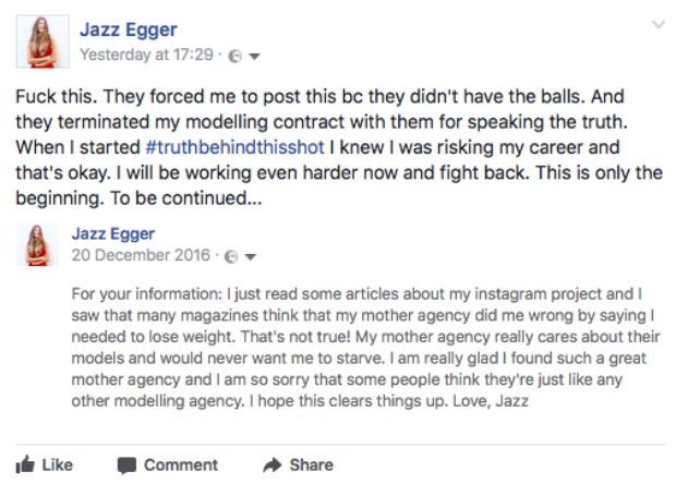 My agent emailed me minutes later to say he will be terminating my modeling contract with them because of the Instagram post.