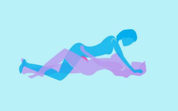 This is one of the best sex positions if your guy is a little too big for you, as he won’t be able to enter you quite as deeply. Once in the missionary position, have your guy turn to his side about 45 degrees so you’re lying diagonally from one another.