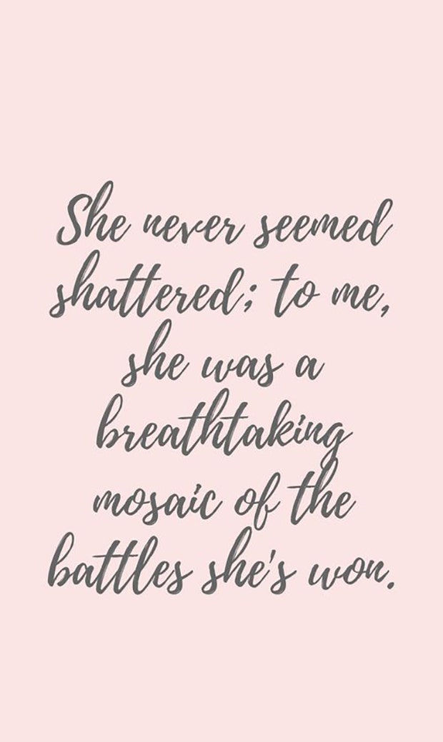 "She never seemed shattered; to me, she was a breathtaking mosaic of the battles she's won."