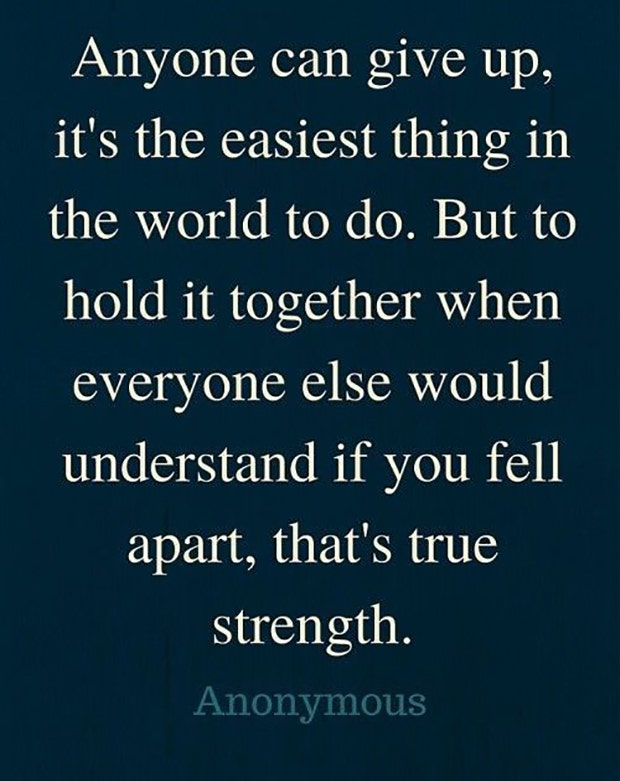 "Anyone can give up, it's the easiest thing in the world to do. But to hold it together when everyone else would understand if you fell apart, that's true strength."