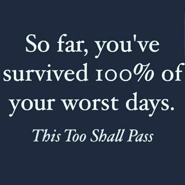 "So far, you've survived 100% of your worst days. This too shall pass."