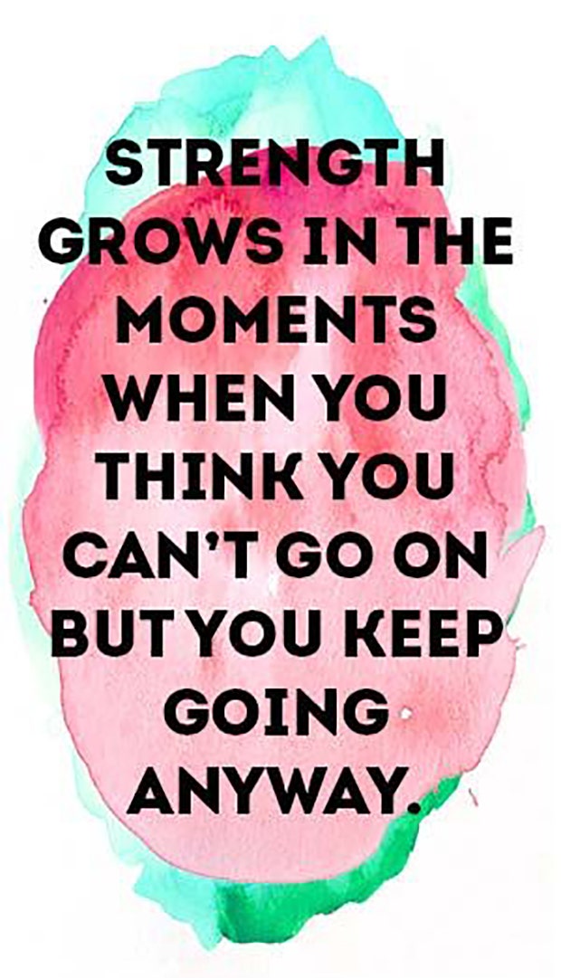 "Strength grows in the moments when you think you can't go on but you keep going anyway."