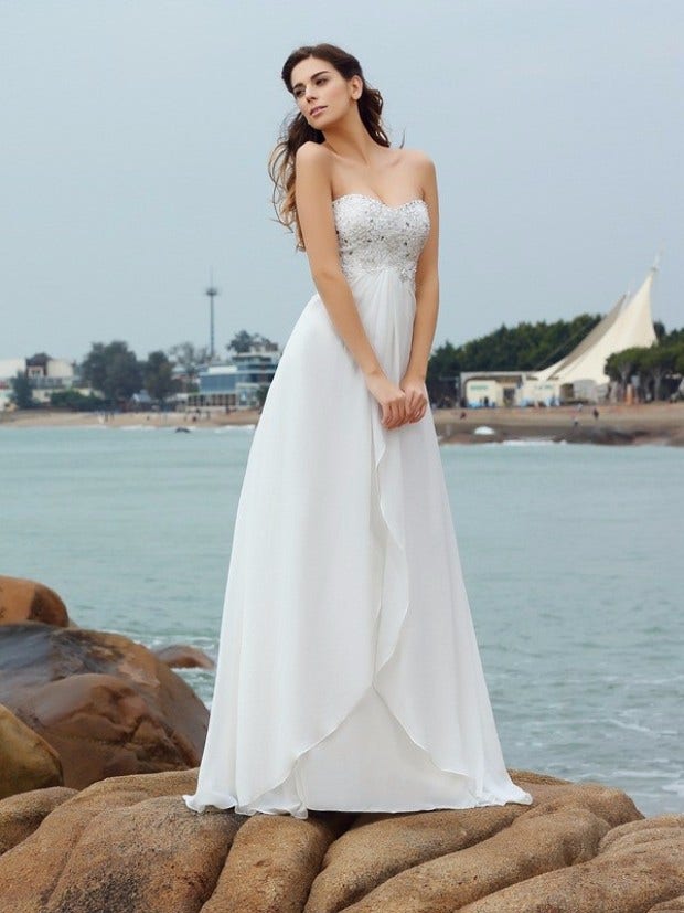 30. A hi-low cut dress is perfect for a windy beach wedding.