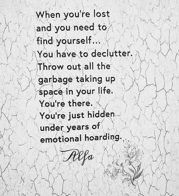 Relax because you’re still underneath all of the garbage life piled on you. This is an uplifting reminder to let go of the emotional hoarding and find yourself again.