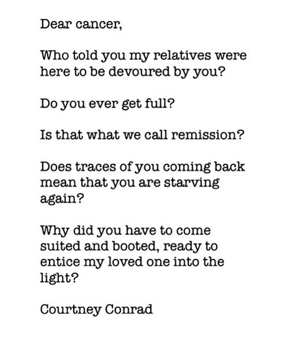 This poem is relatable because it’s so hard seeing a loved one being drained of their life just so cancer feeds itself.
