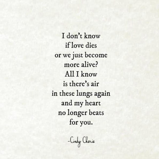 This is, simultaneously, a love and heartbreak poem. It’s an empowering way to celebrate cutting ties with someone that no longer serves a purpose in your life. It questions whether or not love can exist once you decide that you can’t be with a certain person. But, it also celebrates the start of self-love. She’s breathing for herself and her heart no longer beats for anyone else.