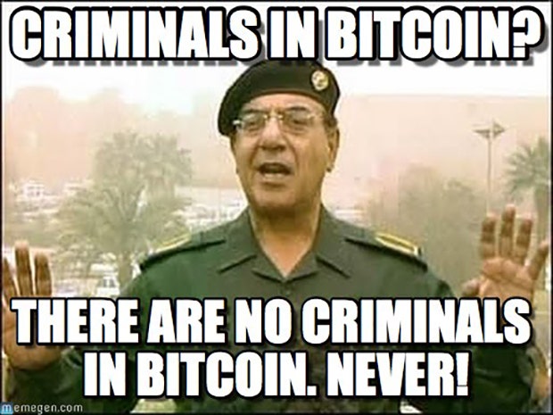 "Criminals in bitcoin? There are no criminals in bitcoin. Never!"