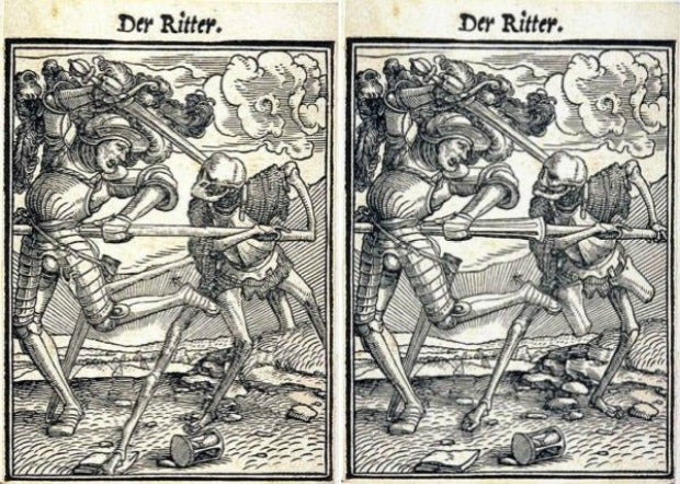 Hopefully the third time will be the charm here. Because, once again, he is NOT and he NEVER was. As revealed on Snopes, these "wood cuttings" are simply photoshopped versions of original wood block prints by the artist Hans Holbein, c. 1497.