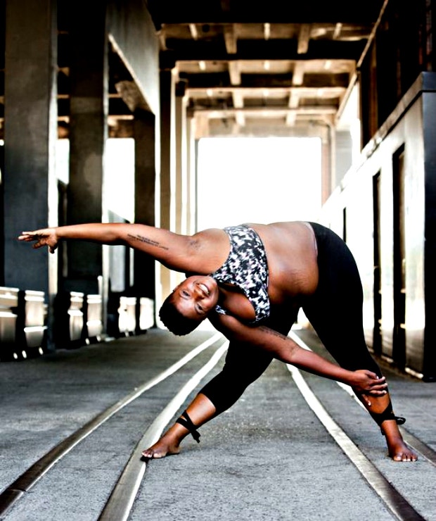She's rocking body positivity, and it's a great look on her. She's a yoga teacher, and she encourages self-love while she shows others a variety of yoga moves that anyone can do. She gives you updates on when her classes are on sale.