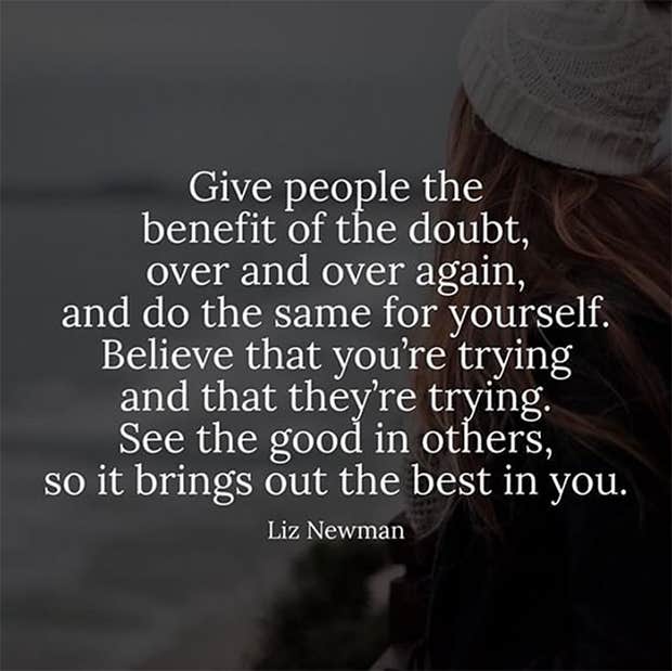 “Give people the benefit of the doubt, over and over again, and do the same for yourself. Believe that you’re trying and that they’re trying. See the good in others, so it brings out the best in you.”—Liz Newman