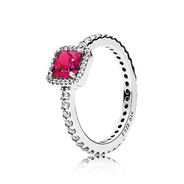 Gorgeous! This ring will take her breath away. With danube-cut synthetic ruby and edging of clear cubic zirconia stones you just have to have this.