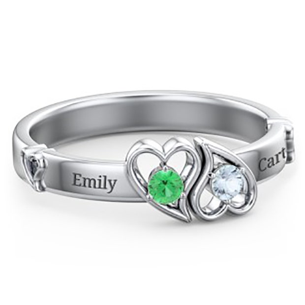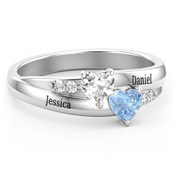 Double Heart Gemstone Ring with Accents is double the love and double the beauty. Your love will fall more in love with you as soon as she opens the box.