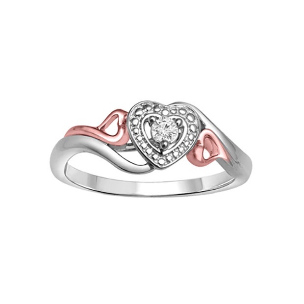 1/20 ct. Diamond Promise Ring in Sterling Silver and 10K Rose Gold. So beautiful! The design with the silver and rose gold come together to create the perfect blend of love and happiness.