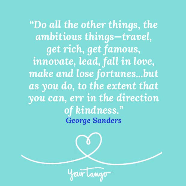 "Do all the other things, the ambitious things—travel, get rich, get famous, innovate, lead, fall in love, make and lose fortunes...but as you do, to the extent that you can, err in the direction of kindness."— George Sanders