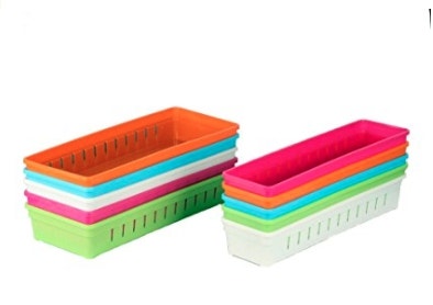These organizer bins are perfect for flatware or school supplies. You can also use them to hold jewelry, makeup, or other hygiene products. They fit into drawers so you can keep them out of sight. And, they make perfect additions to the kids’ playroom or the laundry room. You can use them pretty much anywhere to keep things in order.