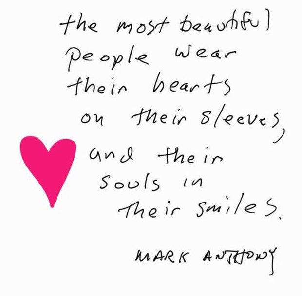 "The most beautiful girls wear their hearts on their sleeves and their souls in their smiles"- Mark Anthony