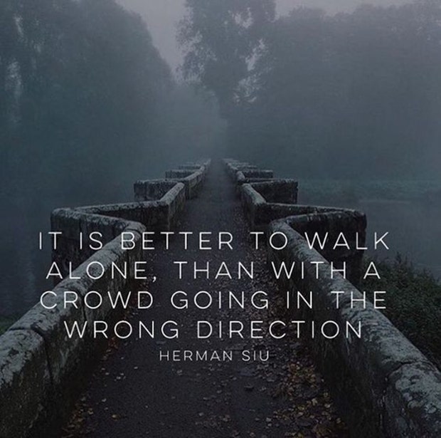 "It is better to walk alone, then with a crowd going in the wrong direction."- Herman Siu