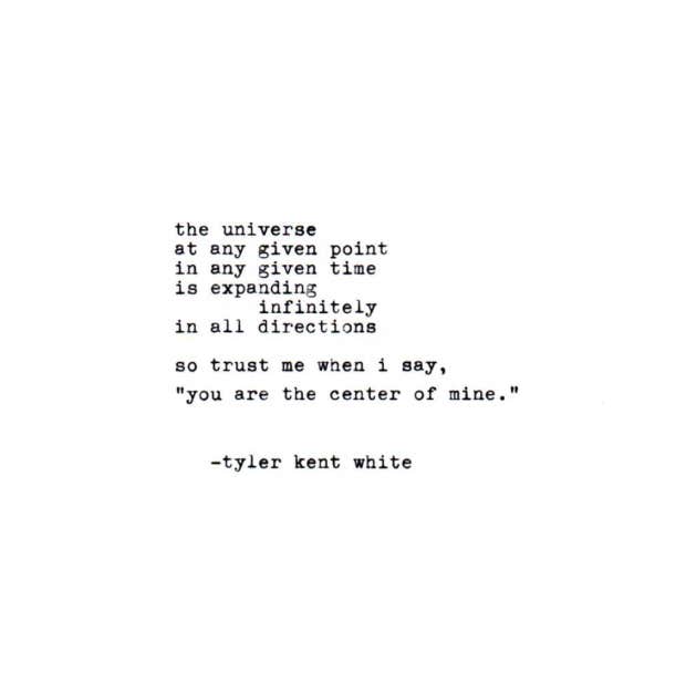 "The universe, at any given point, in any given time, is expanding indefinitely in all directions. So trust me when I say, ‘you are the center of mine.’” – Tyler Kent White