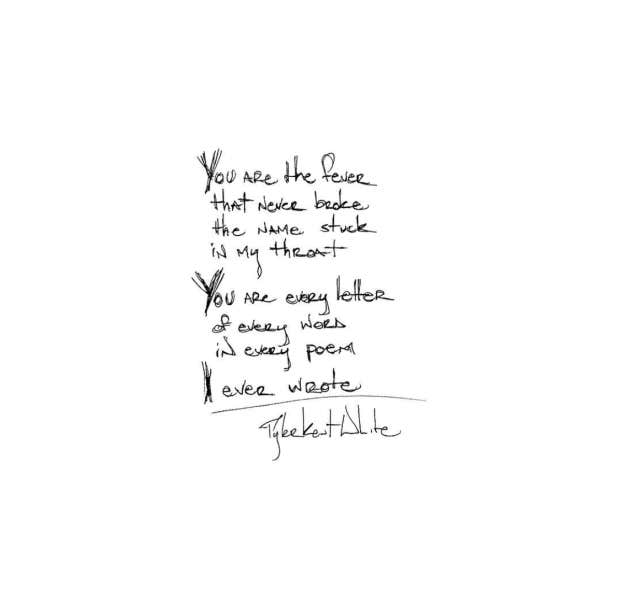 "You are the fever that never broke, the name stuck in my throat. You are every letter of every word in every poem I ever wrote.” – Tyler Kent White