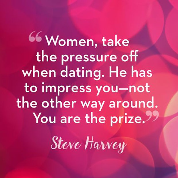 “Women, take the pressure off when dating. He has to impress you – not the other way around. You are the prize.” -Steve Harvey