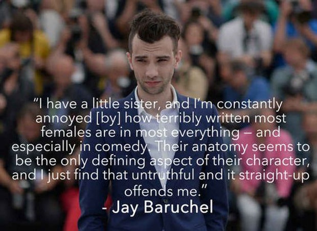 “I have a little sister and I’m constantly annoyed [by] how terribly written most females are in most everything – and especially in comedy. Their anatomy seems to be the only defining aspect of their character, and I just find that untruthful and it straight up offends me.” -Jay Baruchel