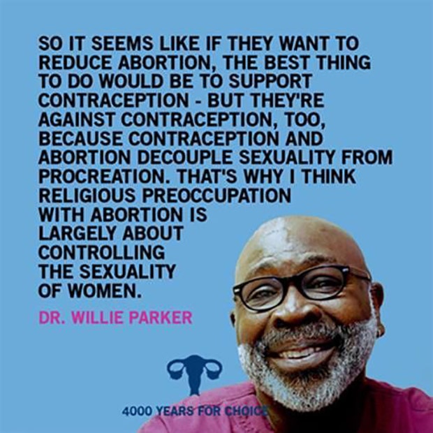 “So it seems like if they want to reduce abortion, the best thing to do would be to support contraception – but they’re against contraception, too, because contraception and abortion decouple sexuality from procreation. That’s why I think religious preoccupation with abortion is largely about controlling the sexuality of women.” -Dr. Willie Parker