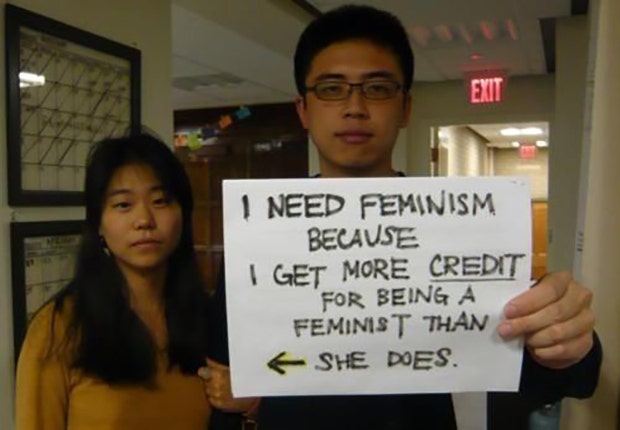 “I need feminism because I get more credit for being a feminist than she does.”