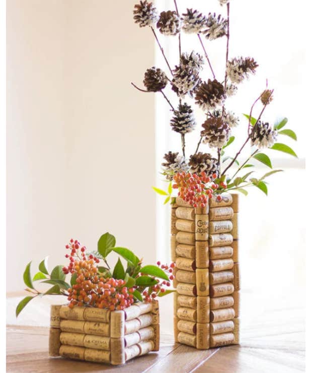 6. Wine cork vase for a rustic touch, inspired by your favorite drink.