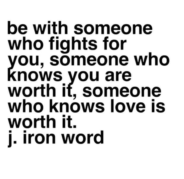 “Be with someone who fights for you, someone who knows you are worth it, someone who knows love is worth it.”—J. Iron Word