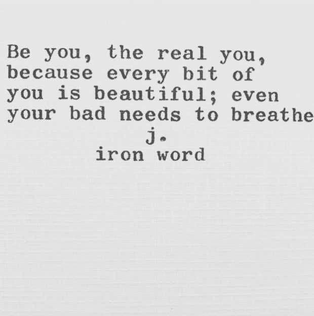 “Be you, the real you, because every bit of you is beautiful; even your bad needs to breathe.”—J. Iron Word