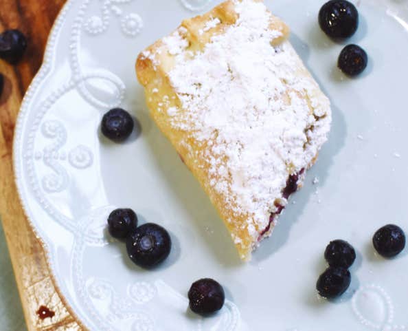 Add some color to your regular lunch routine with this flavorful blueberry pastry. It will be your new go-to snack when heading out the door for errands.