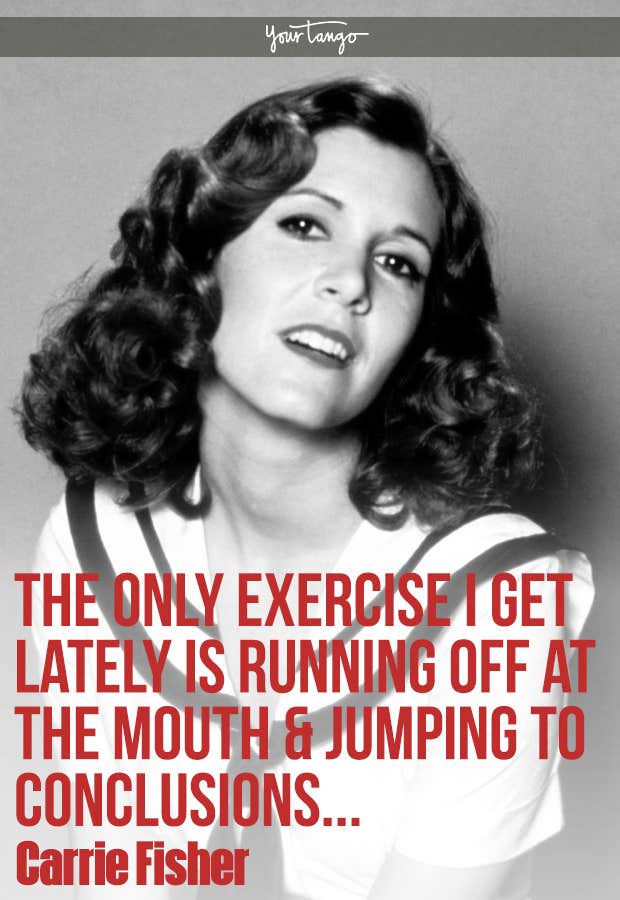 "The only exercise I get lately is running off at the mouth & jumping to conclusions....." — Carrie Fisher